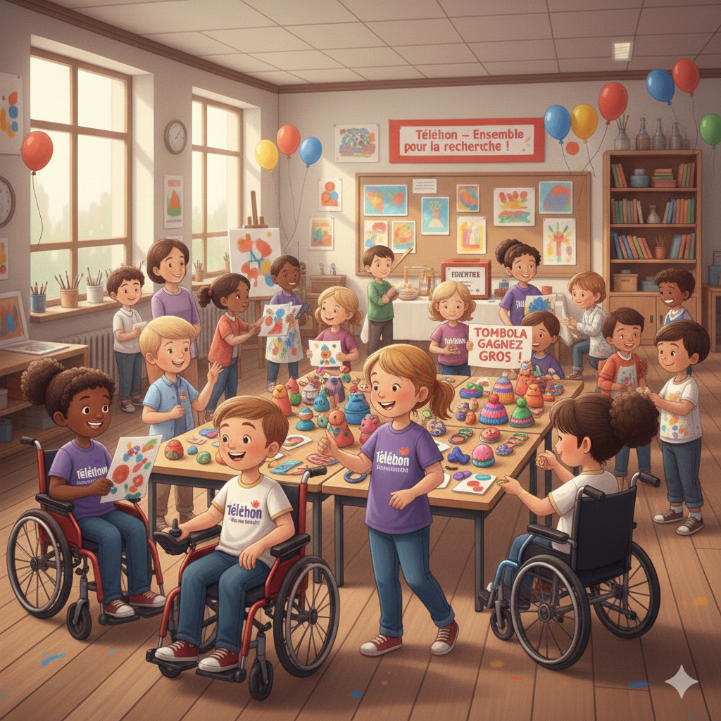 Nos activités s'adressent principalement aux enfants de diverses classes scolaires, leur offrant une opportunité unique de s'engager dans une cause humanitaire. Les parents sont également au cœur de nos initiatives, participant activement et soutenant nos efforts. L'objectif ultime est d'apporter une aide concrète à l'AFM Téléthon, contribuant ainsi à l'amélioration de la vie de nombreux Enfants.